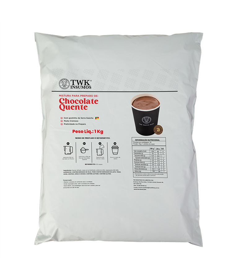 Eleve a experiência de seus clientes com o sabor intenso e a cremosidade única do Chocolate Quente TWK, elaborado com pó de cacau alcalino lecitinado importado. Desenvolvido especialmente para o segmento Foodservice, este mix garante praticidade, qualidade superior e padronização no preparo, resultando em bebidas irresistíveis e sofisticadas.