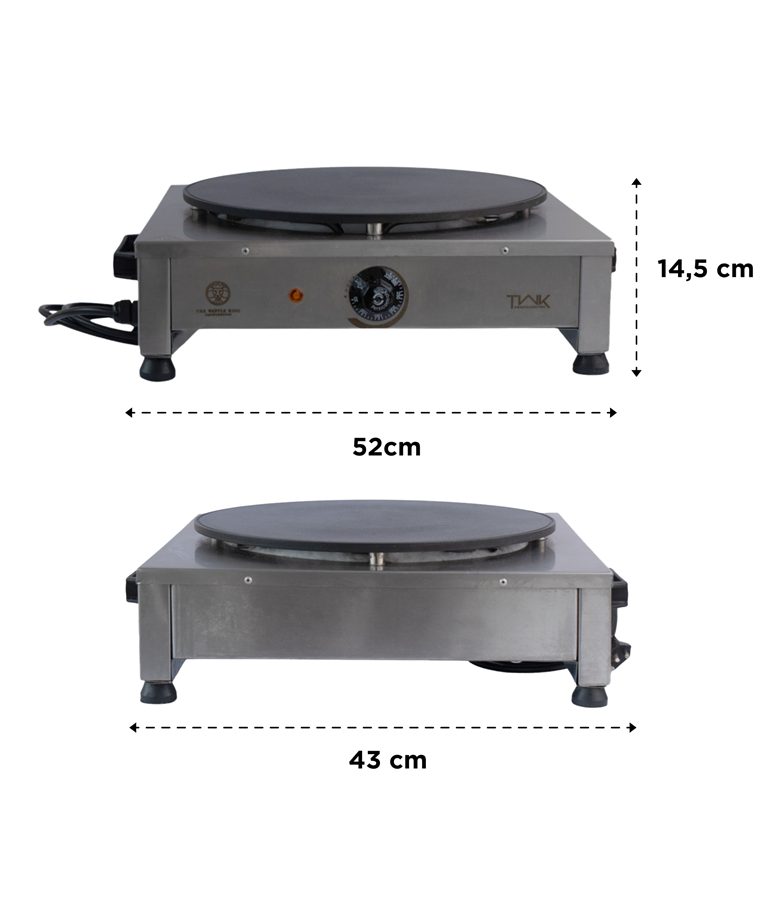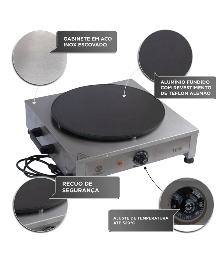 Produção profissional: Ideal para panquecas grandes (até 377 mm), crepes doces e salgados e massas finas.