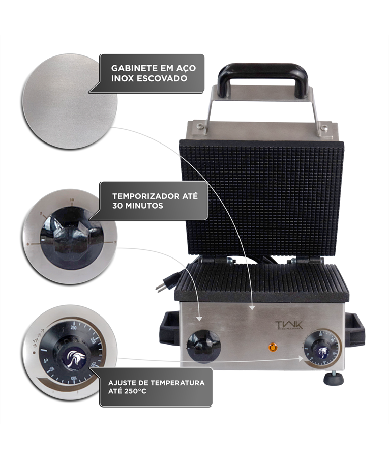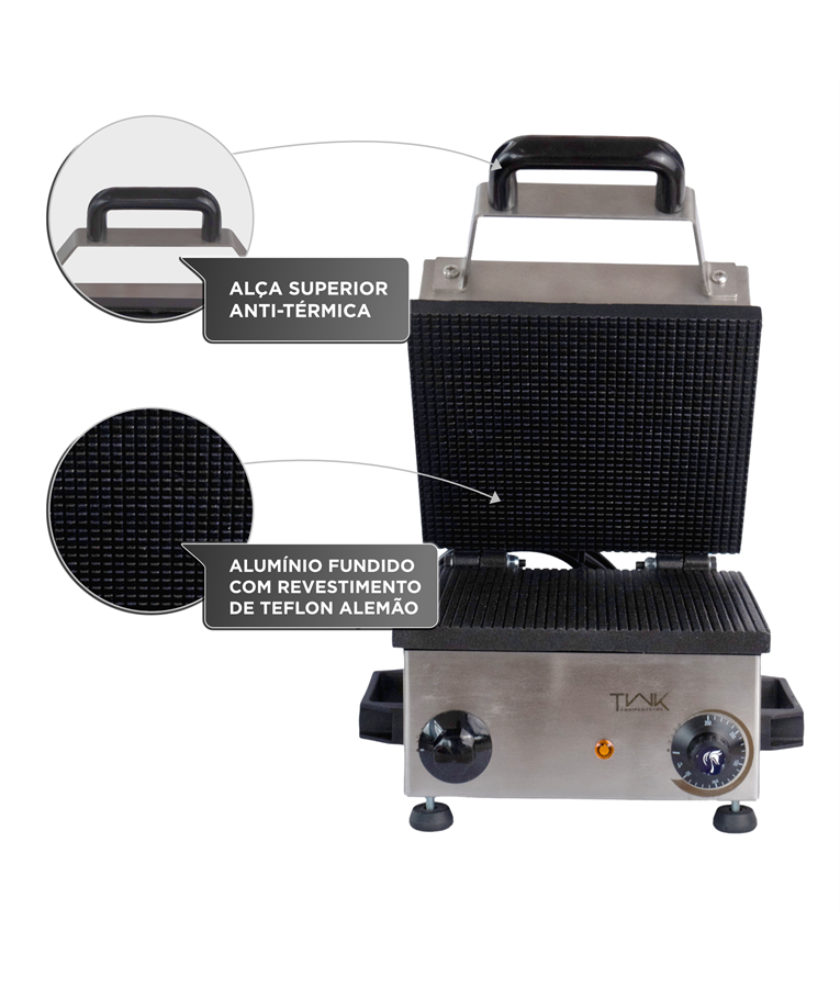 Com aquecimento rápido e placas de alto desempenho que distribuem o calor de forma uniforme, ela garante resultados consistentes, crocância precisa e produção contínua mesmo em horários de pico. Seu revestimento antiaderente permite fácil remoção, limpeza rápida e aumento direto na produtividade do seu negócio.