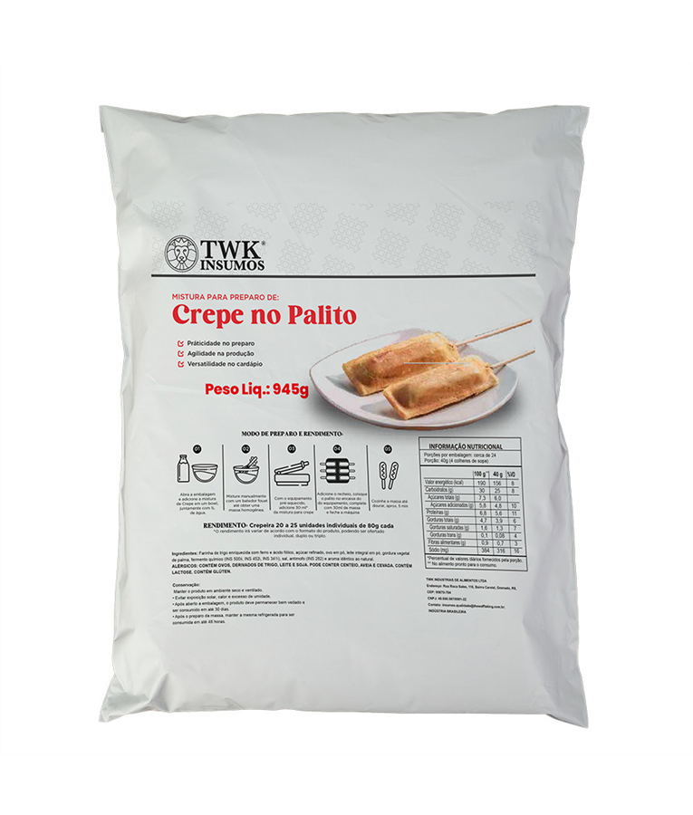 Domine o mercado de crepes com a praticidade, qualidade e rentabilidade do Mix Crepe TWK. Em apenas alguns passos, você oferece crepes leves, saborosos e com acabamento profissional, garantindo eficiência e padronização no seu estabelecimento.